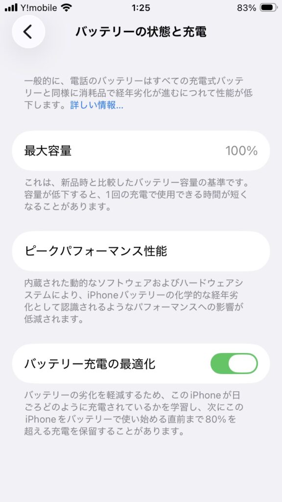 バッテリー最大容量は驚きの100%!