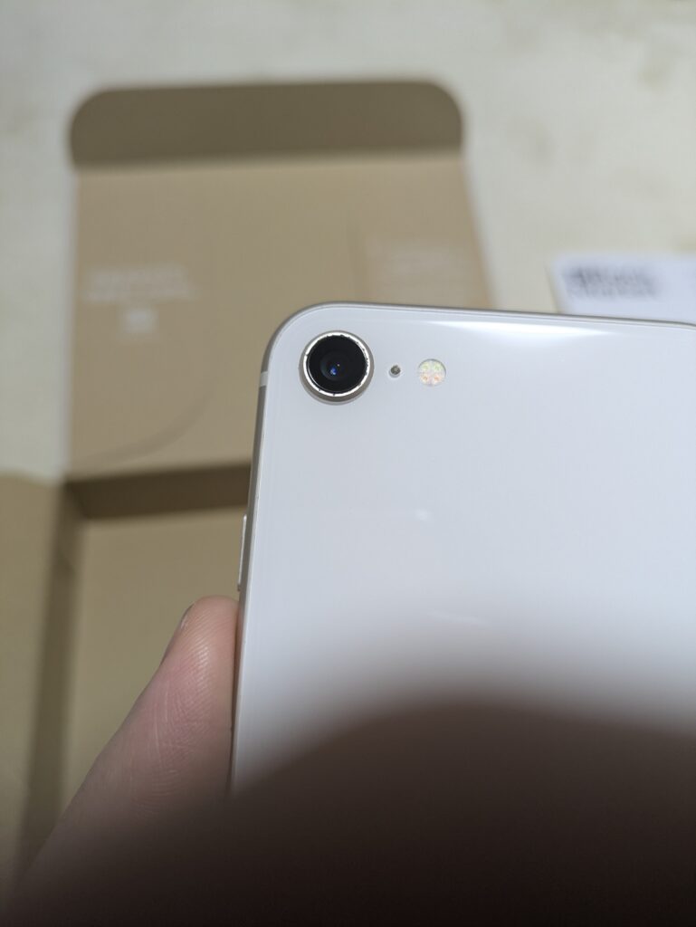 実際に届いた端末を確認してみると、カメラの周囲に目を凝らして見える程度の傷はありましたが、カメラ、本体には目に見える傷はなく、新品と遜色ないほど美品でした。